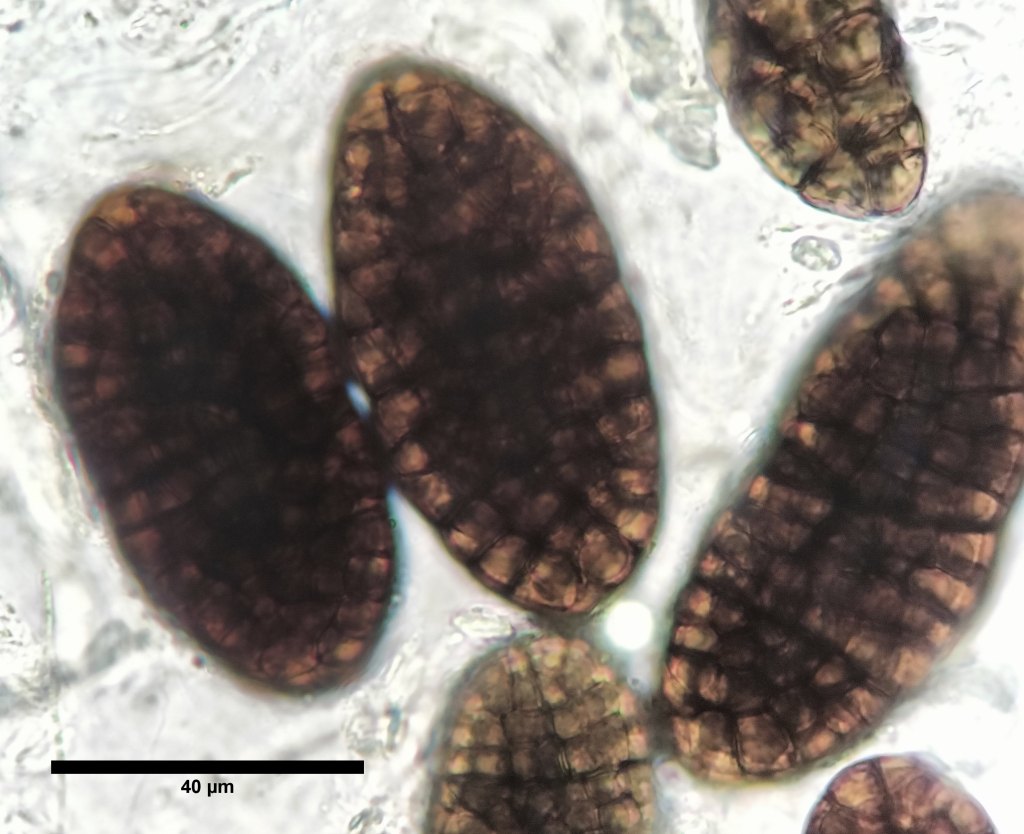 Found with Gymnomitrion sp. on montane boulders. Ascomata are perithecioid, black, around 500 microns diam., glabrous. The ascospores are massive. Asci possible 1-2-spored at maturity. Below are micrographs from Austrian material, but I imagine this species is found with Gymnomitrion in GBI.