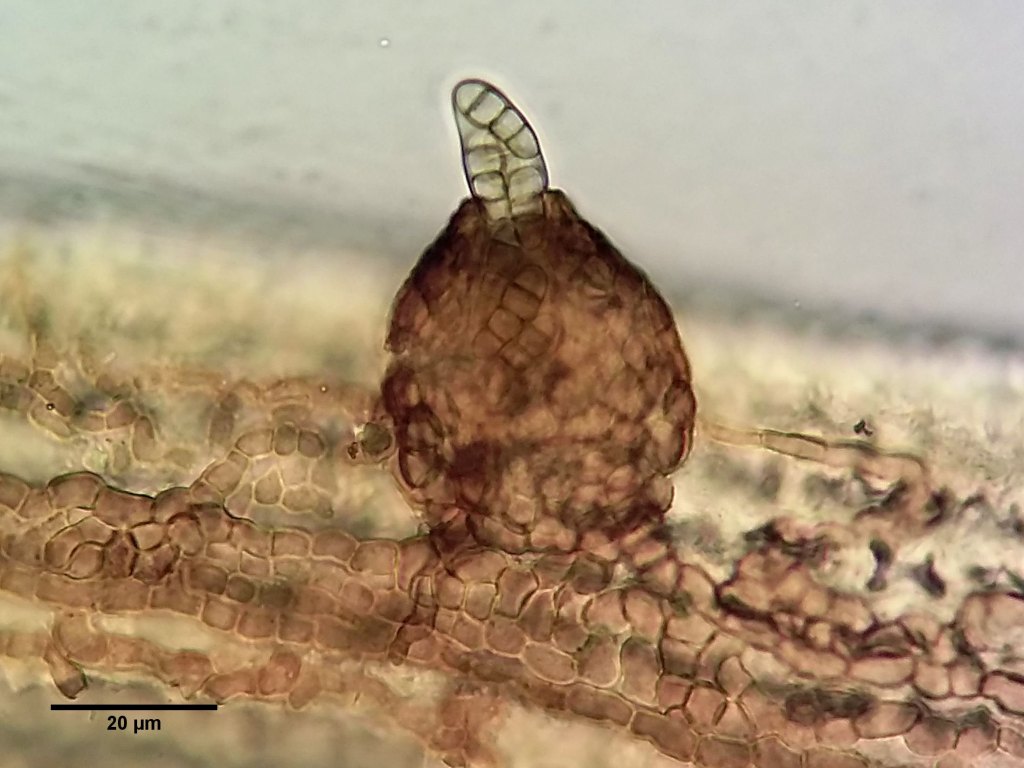 Hosts: Grimmiaceae and Crossidium squamiferum, on the glassy hair points and cuticles of the leaves. Also on Polytrichaceae (P. piliferum), so always worth checking spores.