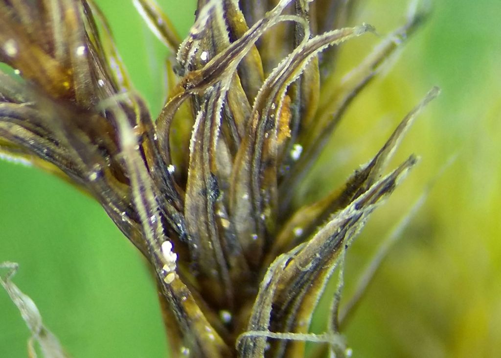 Infected R. lanuginosum under the dissecting microscope. Cairn Gorm, VC96, July 2019Infected leaf of R. lanuginosum showing brown superficial hyphae and ascomata (100X) in water. Cairn Gorm, VC96, July 2019. Hyphae and ascoma releasing ascus. Cairn Gorm, VC96, July 2019A couple of ascospores in water (1000X). Cairn Gorm, VC96, July 2019