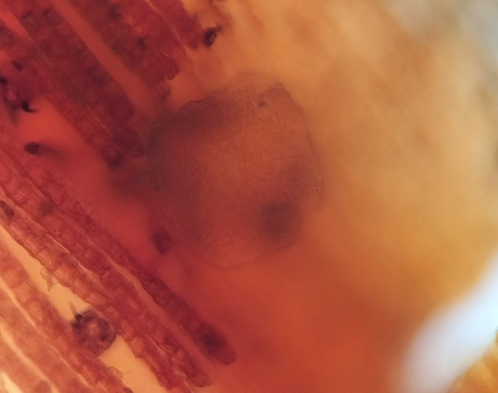 Both fungi produce fruitbodies less than 250 microns in diameter. I have failed to visualise good material of B. cuneifera on P. formosum despite the certainty of its presence in a sample kindly sent to me by Dr Döbbeler. It may take many hours of repeated screening of leaves from many different shoots to identify suitable fungal material. A putative Gloeopeziza sp. (between lamellar zone and lamina), Epibryon interlamellare (ubiquitous) and a possible Bryomyces sp. (lower leaf zones near or within sheaths) were observed. Fruitbodies were found (see below) but they were devoid of ascospores in this case.