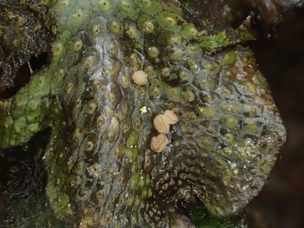 Bryoscyphus conocephali Host: Conocephalum conicum Apothecia in clusters on whitish host patches. Wales, Greiff & BenJeddi 2023. Apothecia Ascus from the above material in water. Share this: Click to share on X (Opens in new window) X Click to share on Facebook (Opens in new window) Facebook Like Loading...