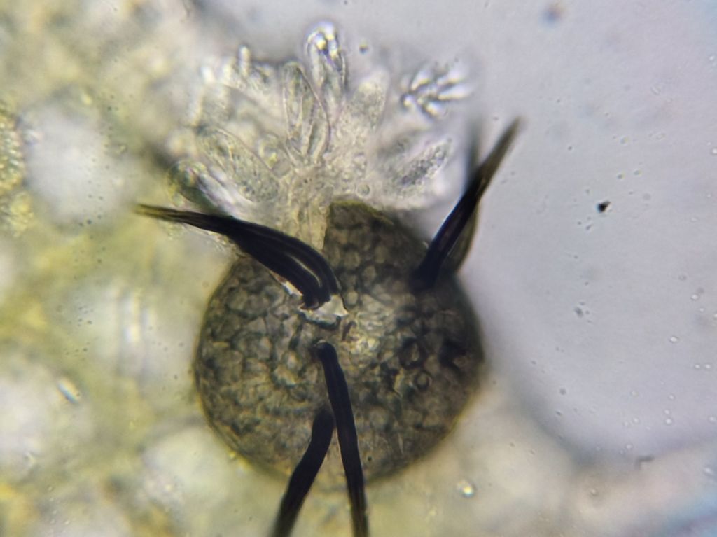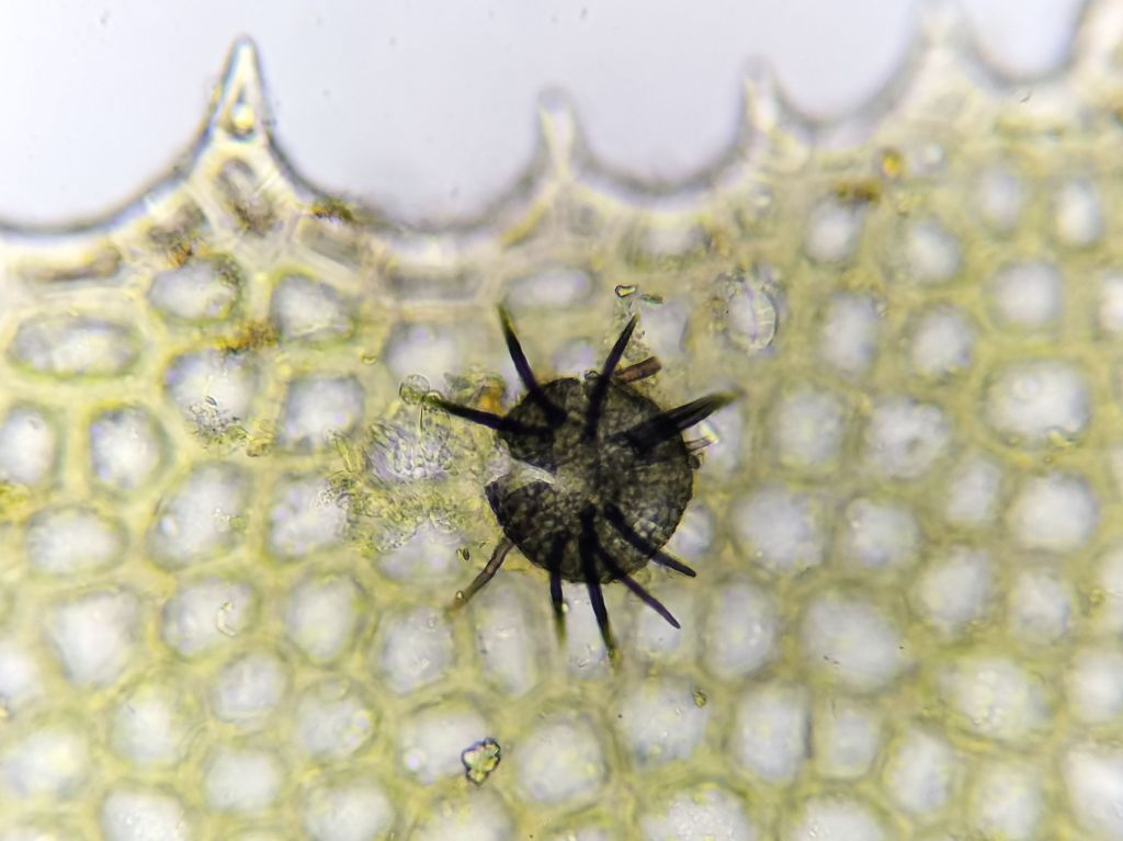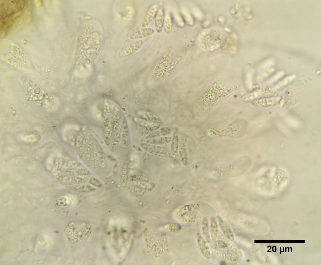 Ascomata on Plagiochila porelloides. Image from Austria, Tyrol, Sept 2022.Fruitbody at the margin of lower leaves of Plagiochila asplenioides under the dissecting microscope (40X) in water. Bouldnor, VC10, Jan 2022Ruptured ascoma on leaf surface, 400X in water. Bouldnor, VC10, Jan 2022Rupture ascoma in water (1000X) with asci and spores. Bouldnor, VC10, Jan 2022Thin superficial hyphae running over host cell walls. Water, 1000X. Bouldnor, VC10, Jan 2022Intracellular hyphae in host cells. Water, 1000X. Bouldnor, VC10, Jan 2022Ascoma squashed (in water). Leigh Woods, North Somerset, VC6, June 2022.Ascoma hairs (water). Leigh Woods, North Somerset, VC6, June 2022.Asci and ascospores in water. Leigh Woods, North Somerset, VC6, June 2022.Asci and ascospores (KOH + IKI). Leigh Woods, North Somerset, VC6, June 2022.Three ascospores in water. Note that they are hardly constricted at the septa. Leigh Woods, North Somerset, VC6, June 2022.
