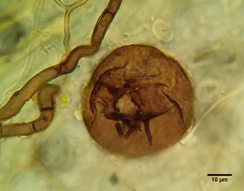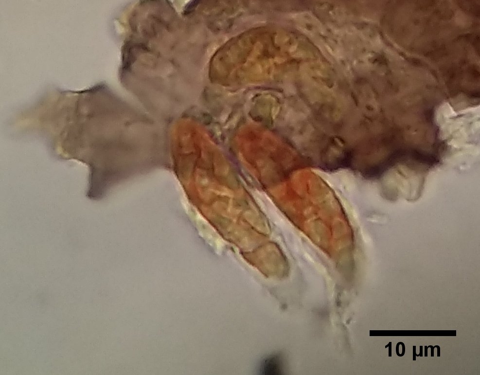 Hosts: Diplophyllum albicans and possibly Barbilophozia sp. mixed with it. Spores approx. 7.5 x 2-2.5. Not seen out of asci.