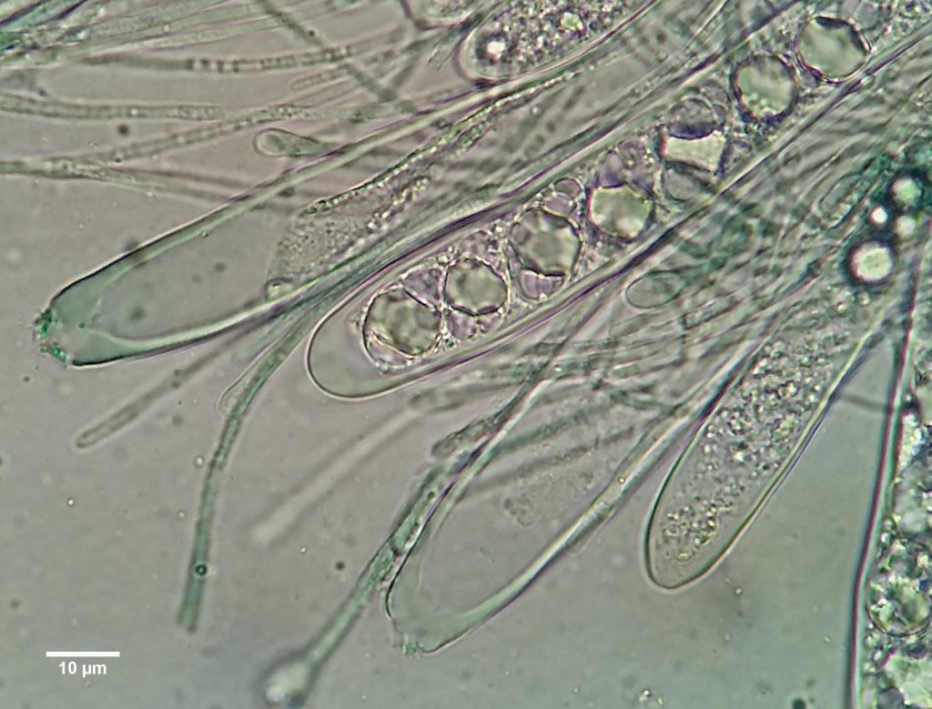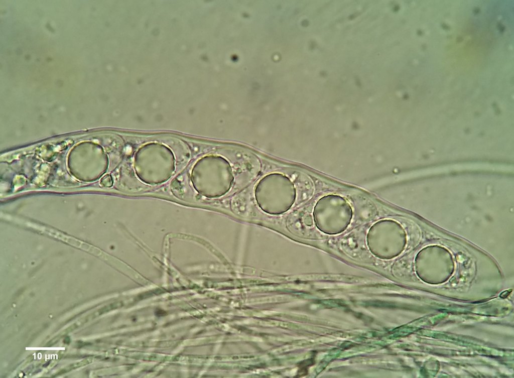 Apothecia on Nardia scalaris. Leg. C. Halpin; photo kindly provided by C. Halpin. March 2022.Apothecia on Nardia scalaris. Leg. C. Halpin; photo kindly provided by C. Halpin. March 2022.On Cephalozia bicuspidata. VC3, April 2019.Asci and paraphyses at 400X. Leg. C. Halpin. Cwm Llwch, Breconshire ,VC42. March 2022 [host = Nardia scalaris]Ectal excipulum cells at apothecial margin in water. Leg. C. Halpin. Cwm Llwch, Breconshire ,VC42. March 2022 [host = Nardia scalaris]Asci and paraphyses in water. Leg. C. Halpin. Cwm Llwch, Breconshire ,VC42. March 2022 [host = Nardia scalaris]Ascus with ~mature spores. Leg. C. Halpin. Cwm Llwch, Breconshire ,VC42. March 2022 [host = Nardia scalaris]Asci, including two overmature ones that have shot out spores (in water). Leg. C. Halpin. Cwm Llwch, Breconshire ,VC42. March 2022 [host = Nardia scalaris]Liberated ascospore in water. Leg. C. Halpin. Cwm Llwch, Breconshire ,VC42. March 2022 [host = Nardia scalaris]