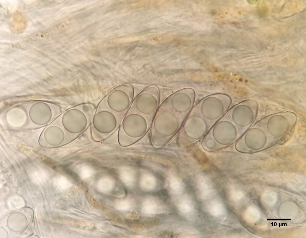 Apothecium among host patch. Culver Cliff, VC10, Dec 2020On Tortula acaulon on disturbed soil in cemetery. Newchurch Cemetery, VC10, Jan 2021Ascus with ascospores in water. Hayling, VC11, Feb 2020. Leg. et det. J. Norton. Photo J. Norton.8-spored asci in water. Leg. C. D. Preston. Cambridgeshire, VC29, Feb 2022.8-spored asci in water. Leg. C. D. Preston. Cambridgeshire, VC29, Feb 2022.