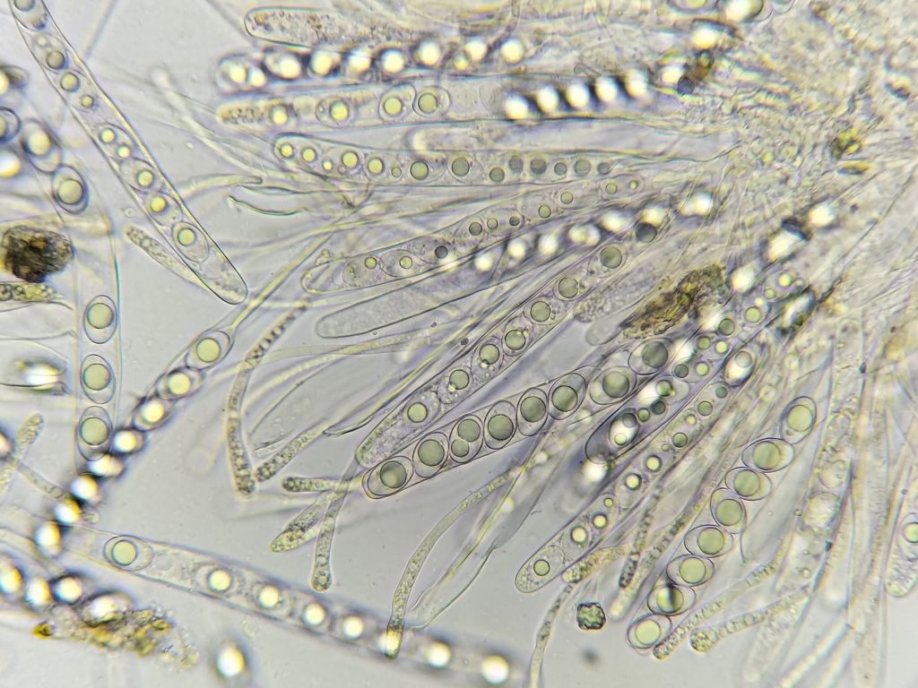 Octospora rubens Apothecium on Ceratodon purpureus on sandy acid soil. Headon Warren, VC10, Dec 2021 Asci, spores and guttulate paraphyses in water (400X) Ascospores in water (400X cropped) Share this: Click to share on X (Opens in new window) X Click to share on Facebook (Opens in new window) Facebook Like Loading...