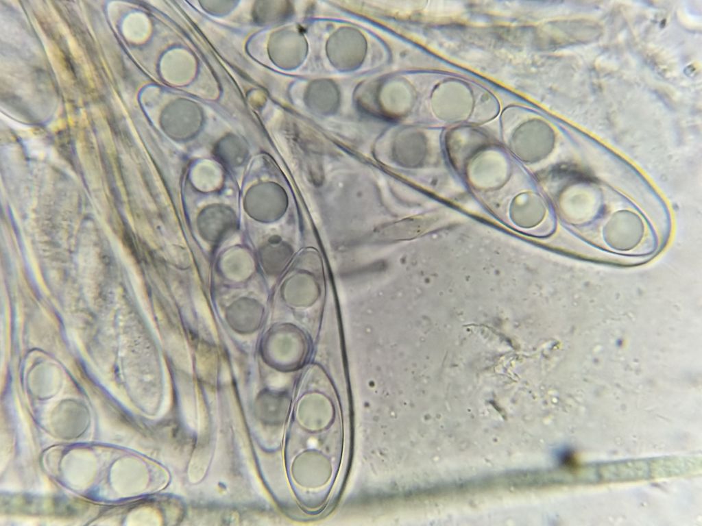The spores of this species seem to be distinctly large and asymmetrical.
