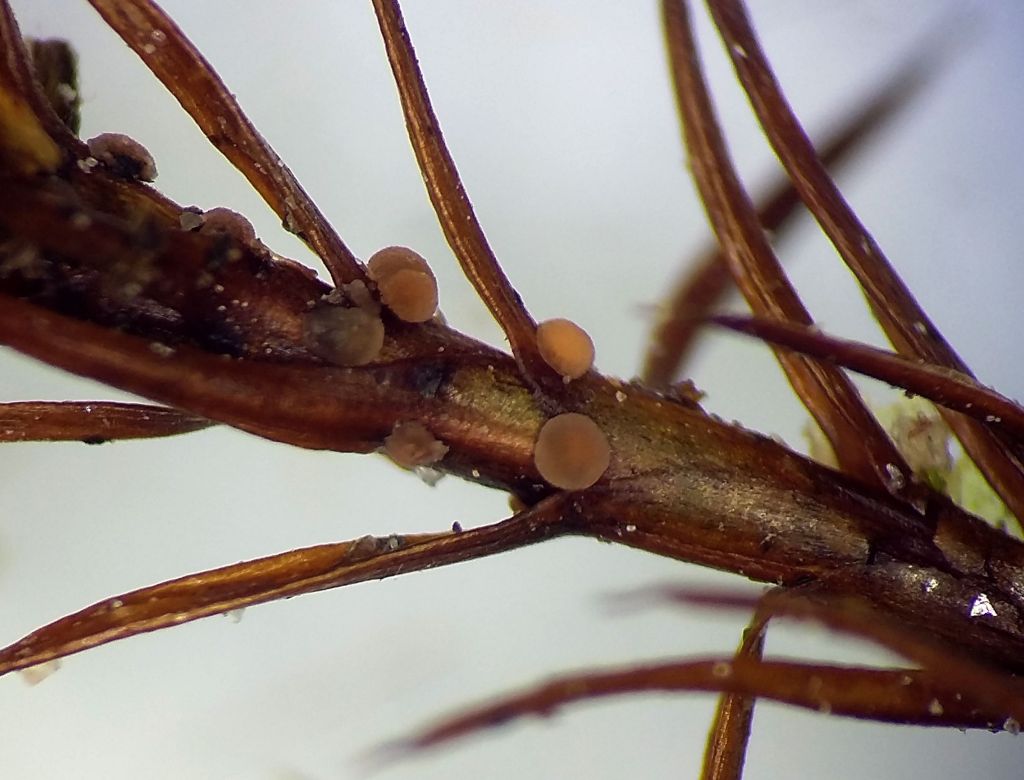Hosts: Polytrichastrum alpinum and Polytrichum juniperinum, but it was able to spread onto other mosses (e.g., Pleurozium schreberi) in a damp chamber. Also reported from Leptodictyum riparium.