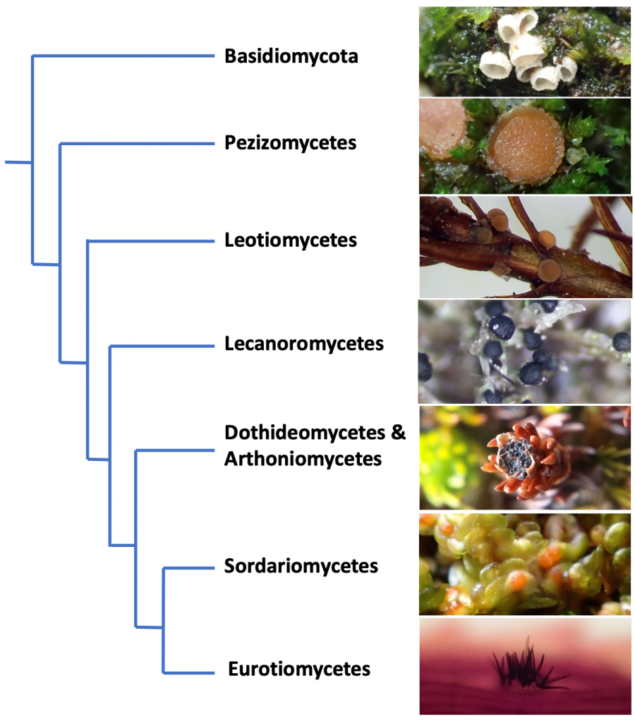 Bryophyte parasitism has evolved independently in many different major groups of ascomycetes (Stenroos et al., 2010). Many convergent traits have appeared: tiny fruitbodies, setae for protection against desiccation, reduction in asci / spores produced, etc.