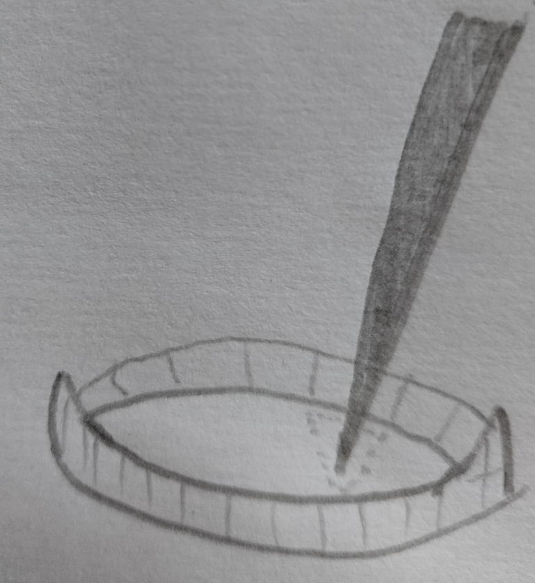 Place the tiny fragment onto a (small) drop of water on a microscope slide. Make sure it’s as small as possible. You can use a pair of dissecting needles to crudely cut it up more once it is on the slide. Make sure the fragments are small enough so that when you put a cover slip over the preparation, it gets squashed without the requirement for much additional force (this can deform spores). You can give the coverslip a tap or light press with the back of a finger nail to spread the contents of the slide.