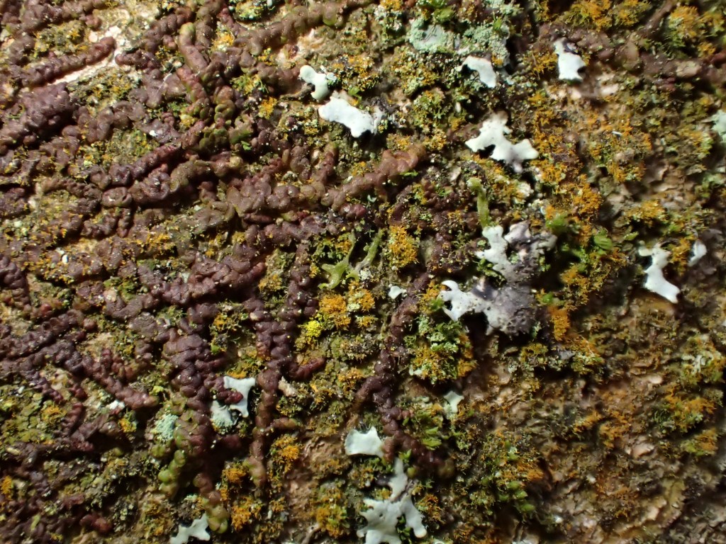 Orange coloured green alga, frequently found growing on and with bryophytes, especially epiphytes but also on humid slopes. When small, populations are easily confused with bryophilous Hypocreales like Bryocentria and Pezizales like Octosporella.